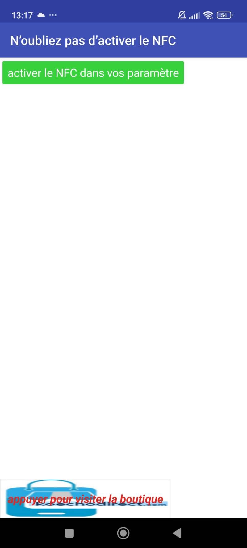 Une fois l’application ouverte, si vous n’avez toujours pas activé le NFC, appuyez sur activer le NFC dans vos paramètre.